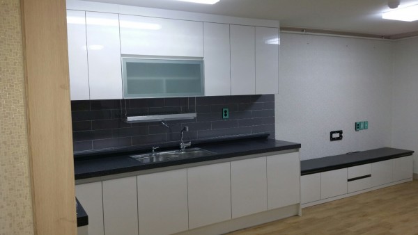 집이 좁다고 하셔서 씽크대랑 장식장을 같이 일체형으로 만들어 드렸습니다.