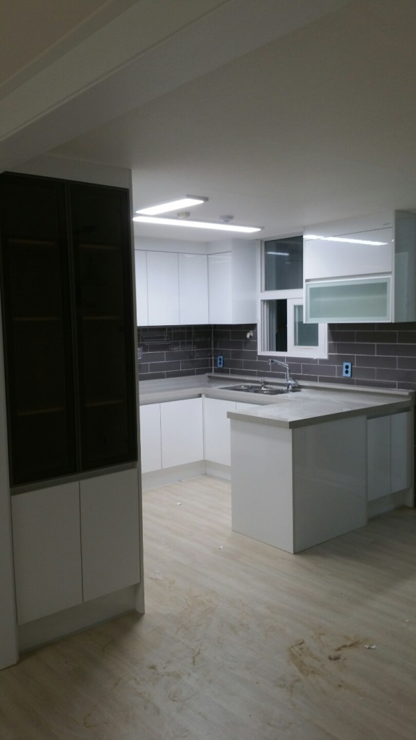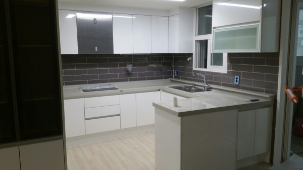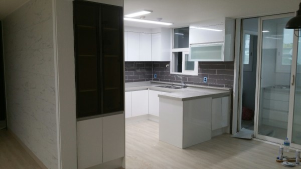 이집은 ㅁ자 형태로 상하부장 LG 하이그러시 화이트펄 팻트로 들어갔으며