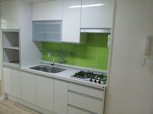 특히 그린 컬러의 주방 벽타일과 너무나 잘 어울리는