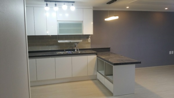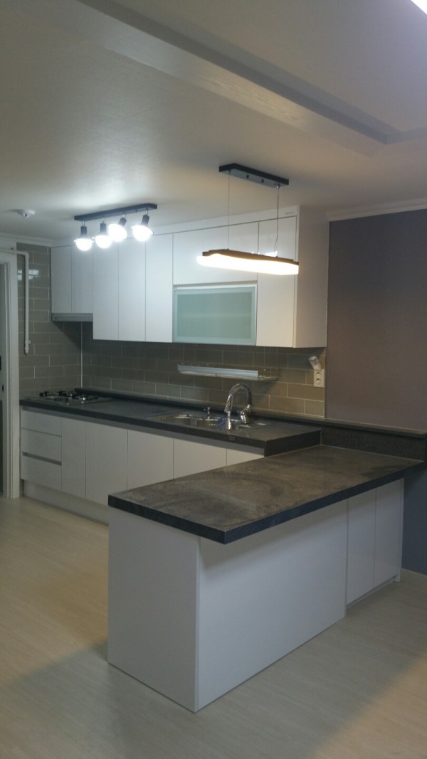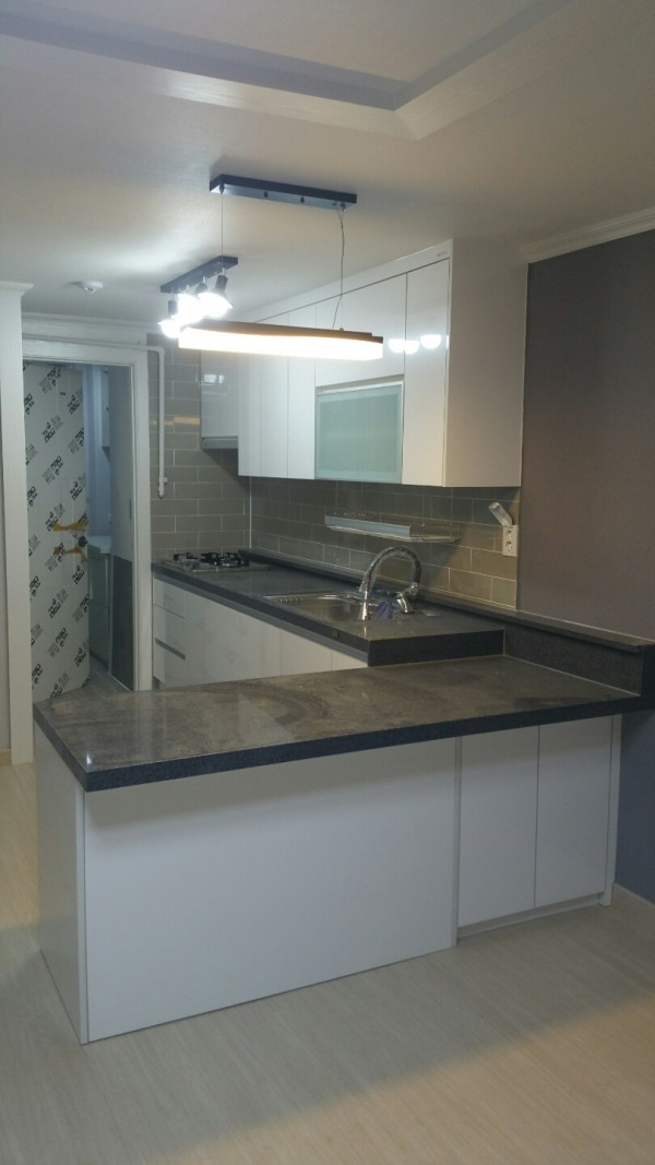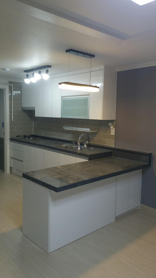 린나이 3구쿡탑, 입수전, 아일랜드를 넣어서 식탁대용으로 쓰실수있게 해드렸습니다